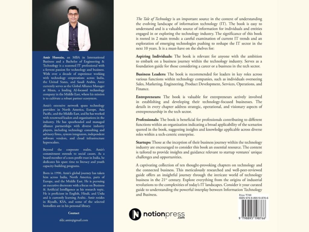 New Delhi (India), August 12: The highly anticipated book, “The Tale of Technology: A Guide to Understanding Technology Business in the 21st Century,” authored by Amir Hussain, is set to be released on August 12, 2024. Published by Notion Press, this insightful non-fiction work provides an in-depth exploration of the intricate world of technology business, offering invaluable insights for a diverse audience.
