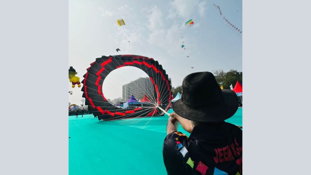 The International Kite Festival was attended by Minister of State for Cottage Industries and Cooperation Mr. Jagdish Vishwakarma, Mayor of Ahmedabad Mrs. Pratibhabahen Jain, invited guests from the country and abroad, kite flyers, diplomatic representatives, local MLAs, AMC office bearers, councillors, and other dignitaries.