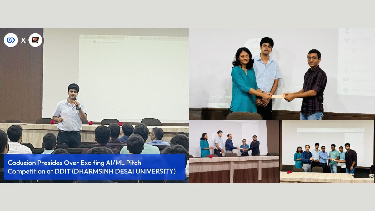 New Delhi (India), July 25: Representatives from Coduzion, a leading innovator in the e-commerce domain, were among the jury members at a Pitch Competition for the students at Dharamsinh Desai University (DDIT) to ideate solutions at the intersection of Artificial Intelligence/Machine Learning and eCommerce technologies. The event, held on July 23rd, 2024, drew over 30 enthusiastic teams eager to showcase their groundbreaking ideas on how AI and Machine Learning can revolutionise the eCommerce landscape.