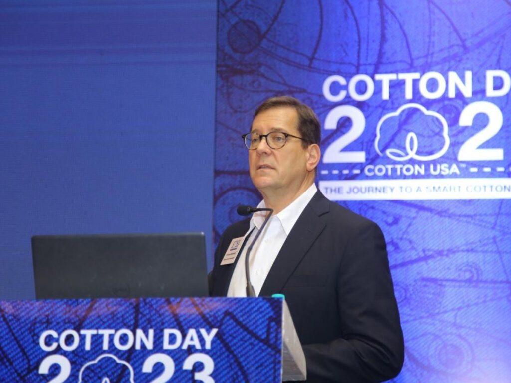 Addressing the Coimbatore mill owners, dealers, brands, industry experts at the recently held Cotton Day 2023 in Coimbatore by Cotton Council International