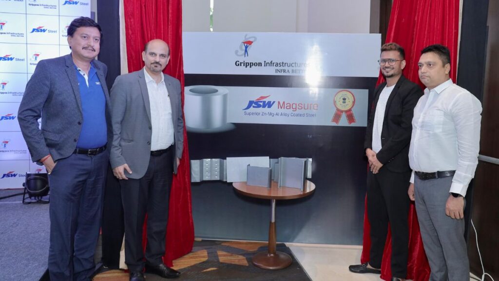The launch event was graced by Mr. Sandeep Khanna, Vice President of JSW Coated Division Sales and Marketing, who inaugurated Magsure for Pre-Engineered Buildings (PEB). Mr. Khanna commended Grippon’s partnership with JSW and praised their accomplishments. He also shared JSW’s vision across various sectors, including sports, paints, and infrastructure.