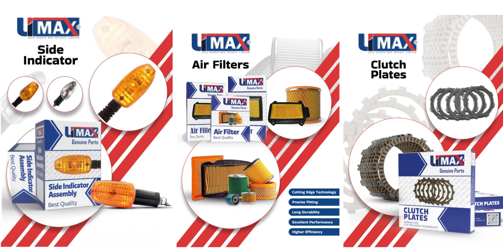 Umax Auto Spares offers a diverse range of products, including indicators, clutch plates, brake shoes, engine oil, air filters, LED lights, and more. Their strong market presence extends across Europe, the UK, the US, and the ASEAN region. Strategic partnerships with leading delivery services like Amazon, DTDC, Ecom Express, and Blue Dart guarantee efficient product distribution.